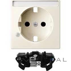 Накладка с модулем защиты от перенапряжения M-Smart, M-Plan, M-Elegance, со шторками, с заземлением, одинарная, винтовые клеммы, безвинтовые клеммы, цвет - бежевый