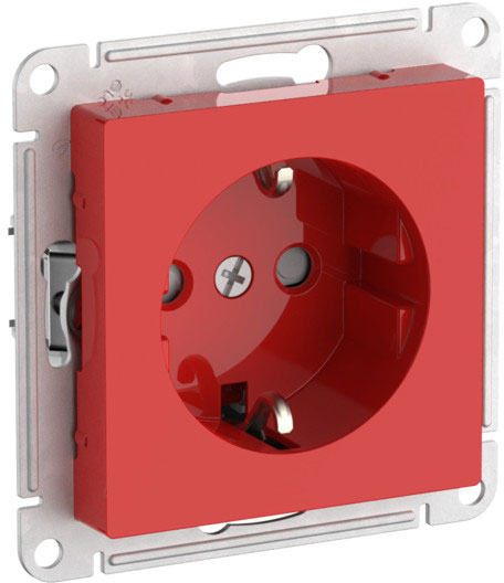 Розетка Atlas Design Antique, AtlasDesign Air, Atlas Design, со шторками, с заземлением, одинарная, винтовые клеммы, цвет - красный