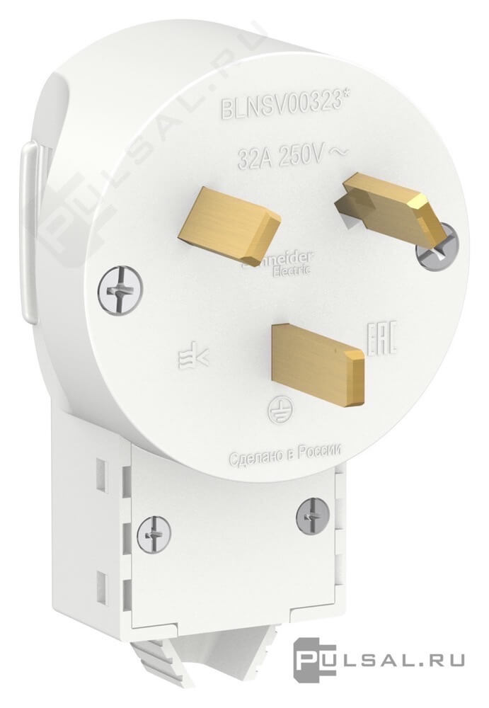 Вилка для электроплиты 2Р+N, 32 А Blanca, с заземлением, одинарная, винтовые клеммы, цвет - белый