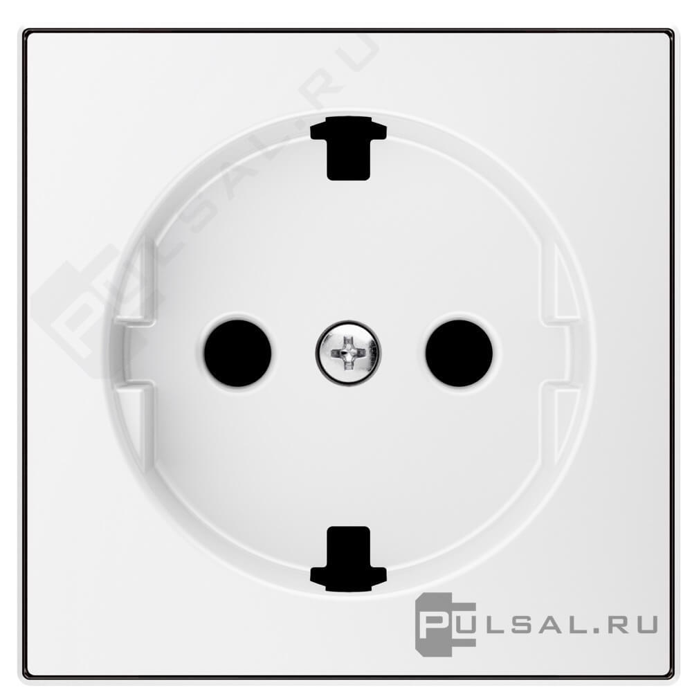 Накладка розетки с плоской поверхностью SKY, со шторками, с заземлением, одинарная, винтовые клеммы, цвет - белый