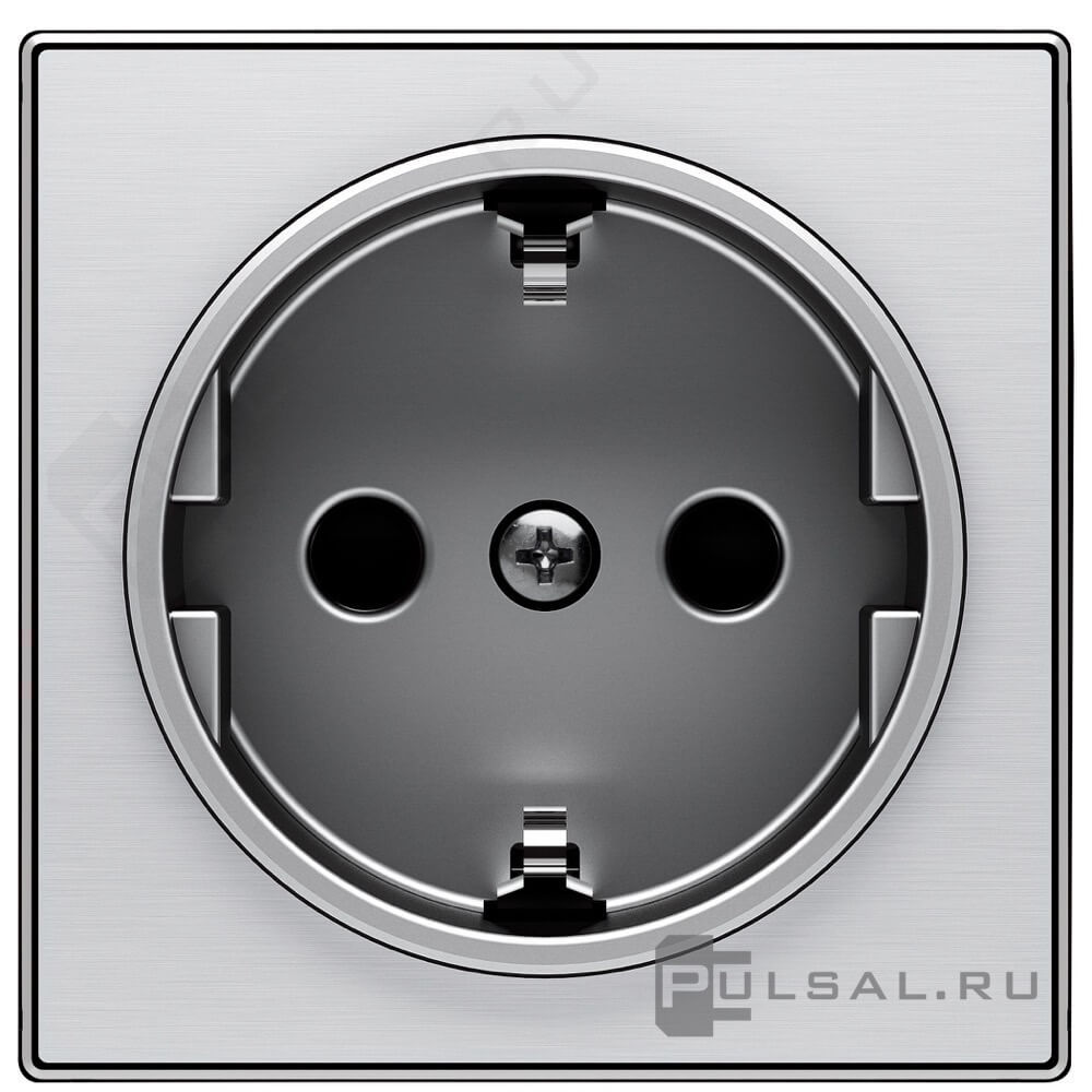 Накладка SKY, со шторками, с заземлением, одинарная, винтовые клеммы, безвинтовые клеммы, цвет - нержавеющая сталь