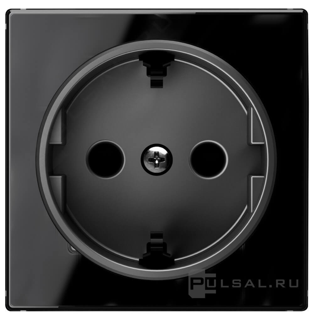 Накладка SKY, со шторками, с заземлением, одинарная, винтовые клеммы, безвинтовые клеммы, цвет - черное стекло