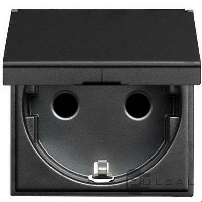 Розетка Zenit, со шторками, с крышкой, с заземлением, одинарная, винтовые клеммы, цвет - антрацит