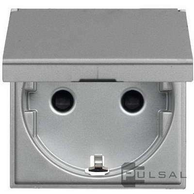 Розетка Zenit, со шторками, с крышкой, с заземлением, одинарная, винтовые клеммы, цвет - серебряный