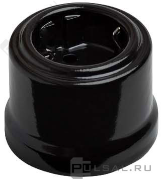Розетка Лизетта, без шторок, с заземлением, одинарная, винтовые клеммы, цвет - черный