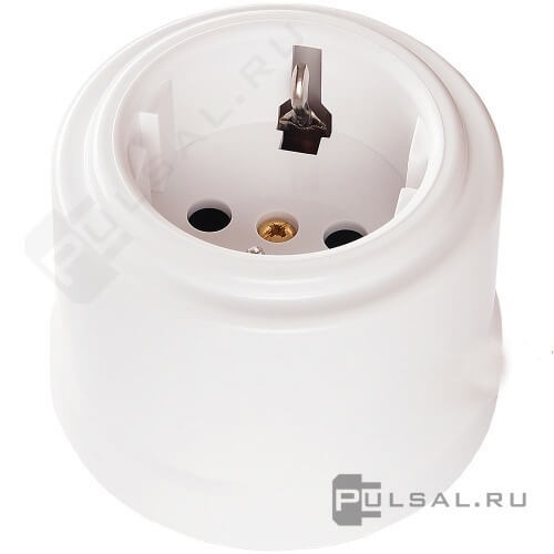 Это обычная электрическая розетка, в конструкции которой предусмотрен третий, заземляющий контакт.