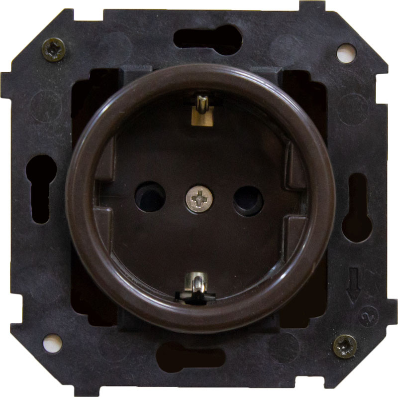 Розетка Шедель, без шторок, с заземлением, одинарная, винтовые клеммы, цвет - коричневый