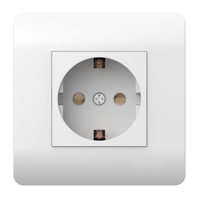 Розетка NEW3-E, со шторками, с заземлением, одинарная, винтовые клеммы, цвет - белый