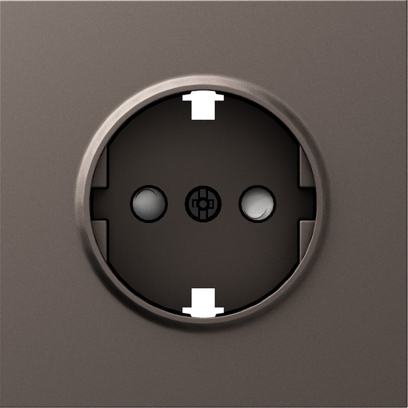 Накладка электрической розетки S08, со шторками, с заземлением, одинарная, винтовые клеммы, цвет - мокко