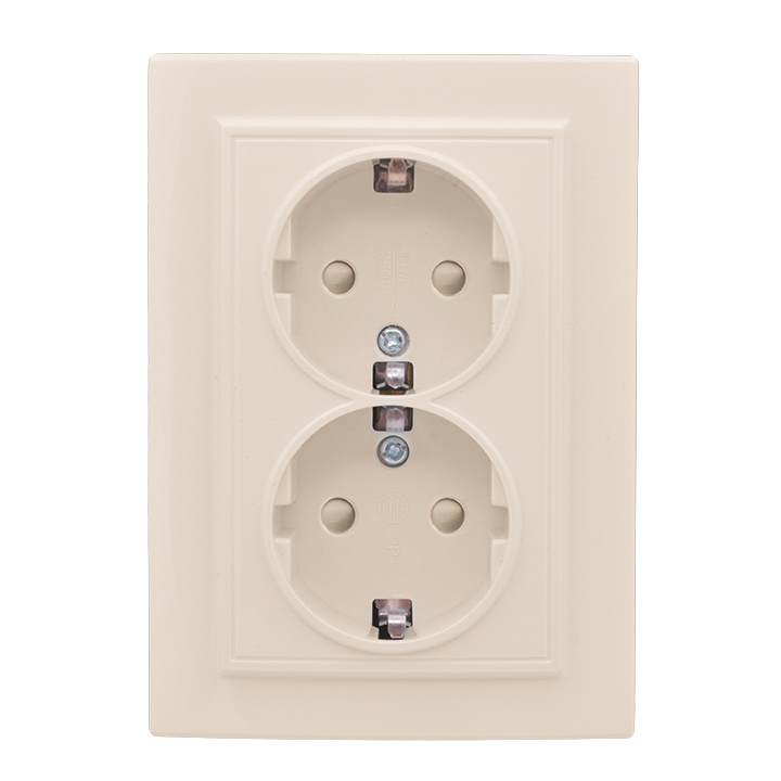 Минск, со шторками, без заземления, двойная, безвинтовые клеммы, цвет - бежевый