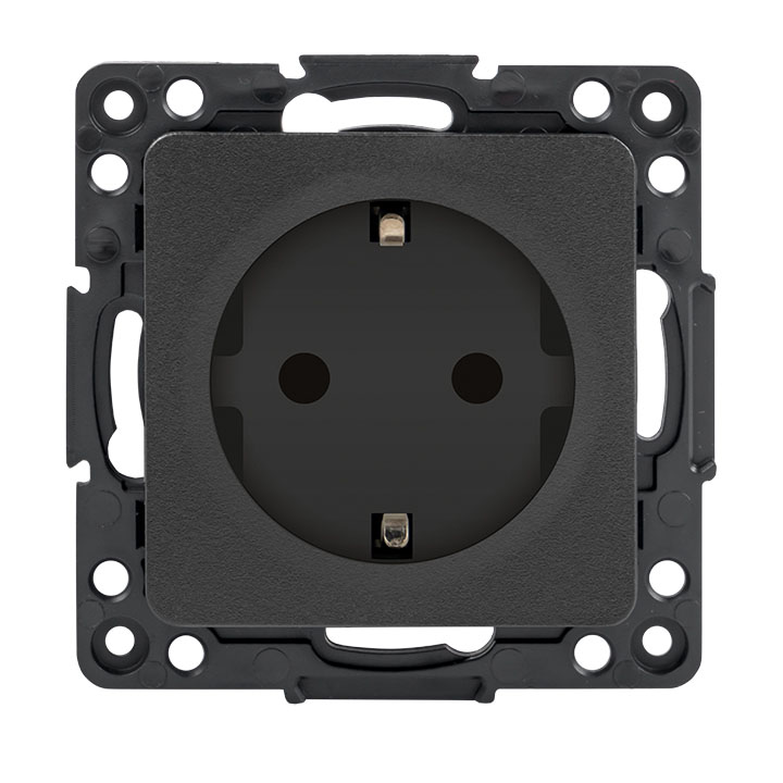 Розетка Стокгольм, со шторками, с заземлением, одинарная, безвинтовые клеммы, цвет - черный