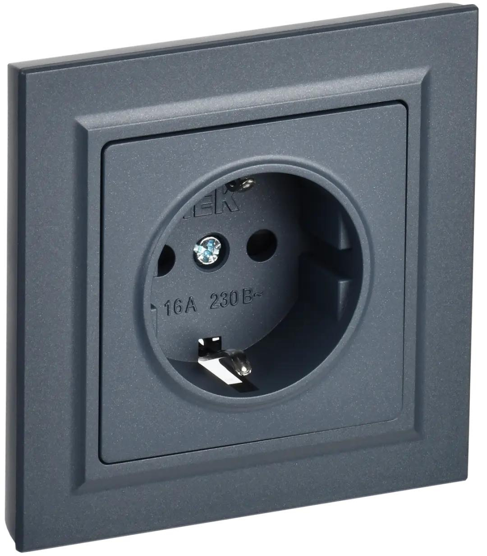 Розетка с рамкой BRITE, со шторками, с заземлением, одинарная, винтовые клеммы, цвет - маренго