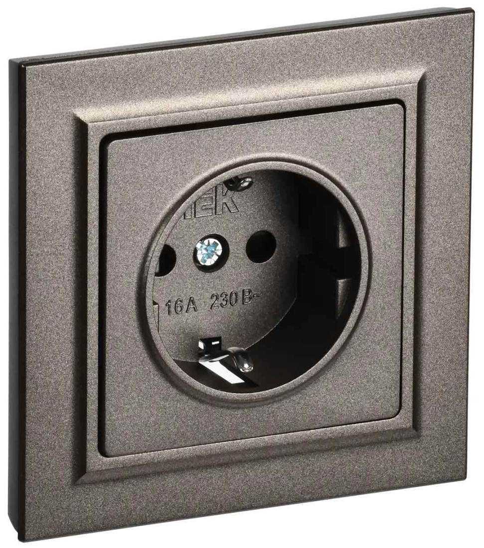Розетка с рамкой BRITE, со шторками, с заземлением, одинарная, винтовые клеммы, цвет - темная бронза