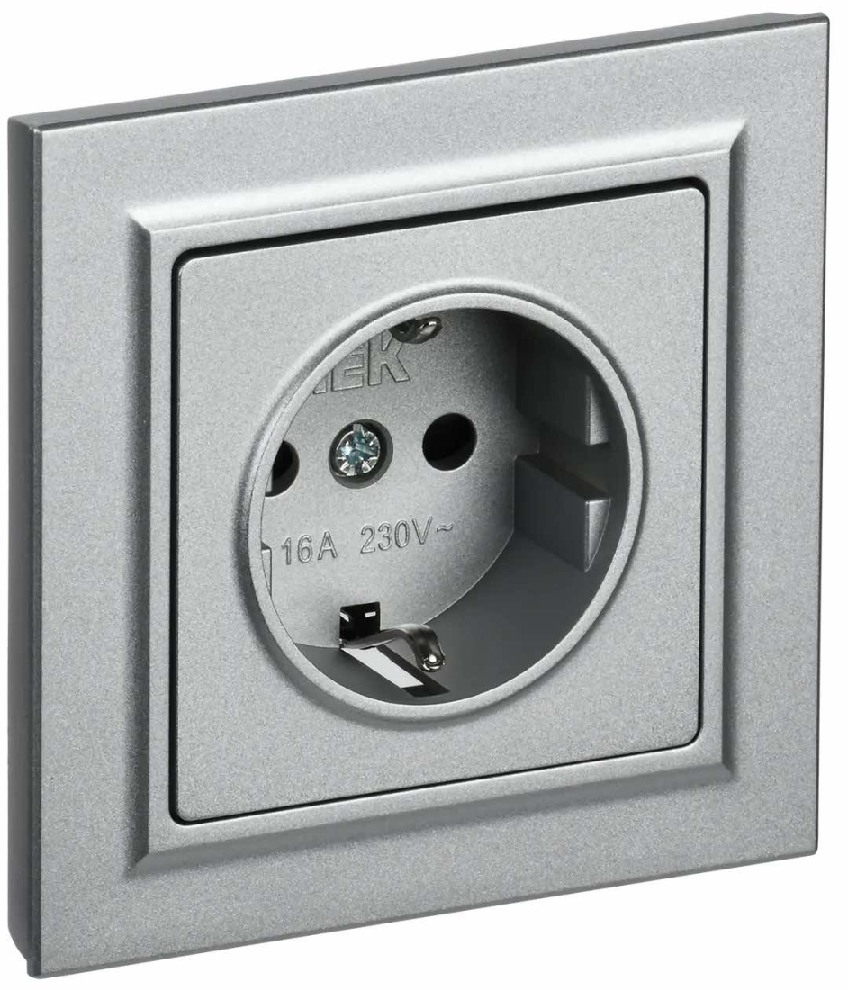 Розетка с рамкой BRITE, со шторками, с заземлением, одинарная, винтовые клеммы, цвет - алюминий