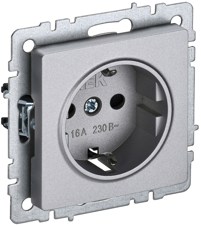 Розетка BRITE, со шторками, с заземлением, одинарная, винтовые клеммы, цвет - алюминий