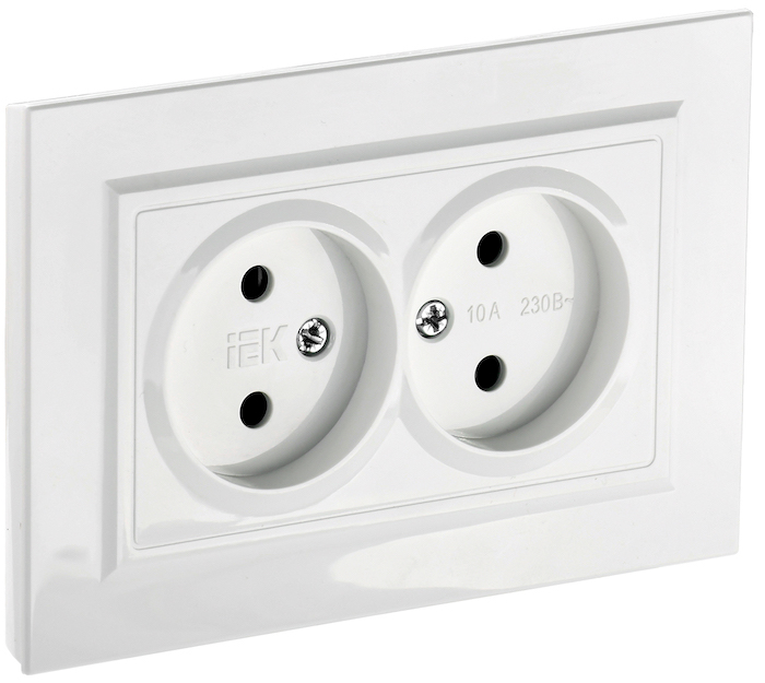 Розетка-моноблок BRITE, без шторок, без заземления, двойная, винтовые клеммы, цвет - белый