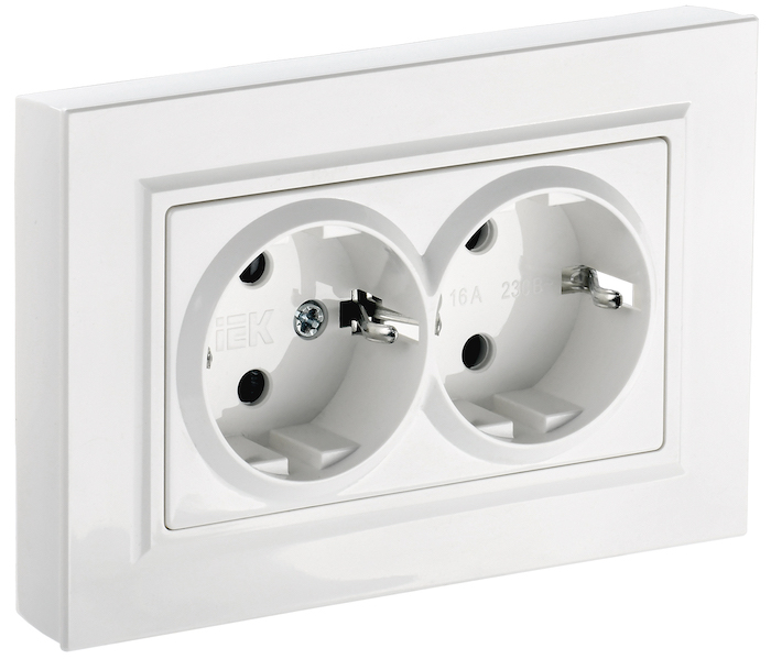 Розетка-моноблок BRITE, без шторок, с заземлением, двойная, винтовые клеммы, цвет - белый