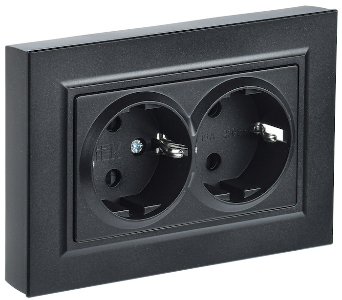 BRITE, со шторками, без заземления, двойная, винтовые клеммы, цвет - черный