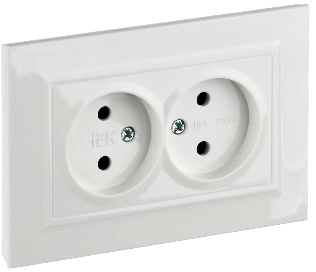 Розетка-моноблок BRITE, со шторками, без заземления, двойная, винтовые клеммы, цвет - белый