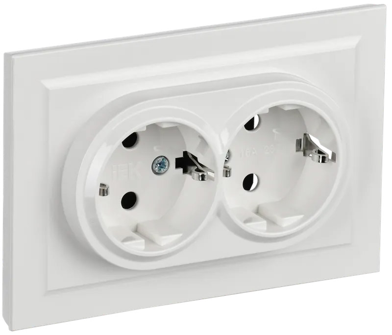 Розетка-моноблок BRITE, со шторками, с заземлением, двойная, винтовые клеммы, цвет - белый