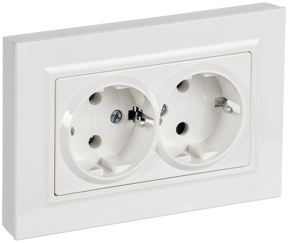 Розетка-моноблок BRITE, без шторок, с заземлением, двойная, винтовые клеммы, цвет - белый