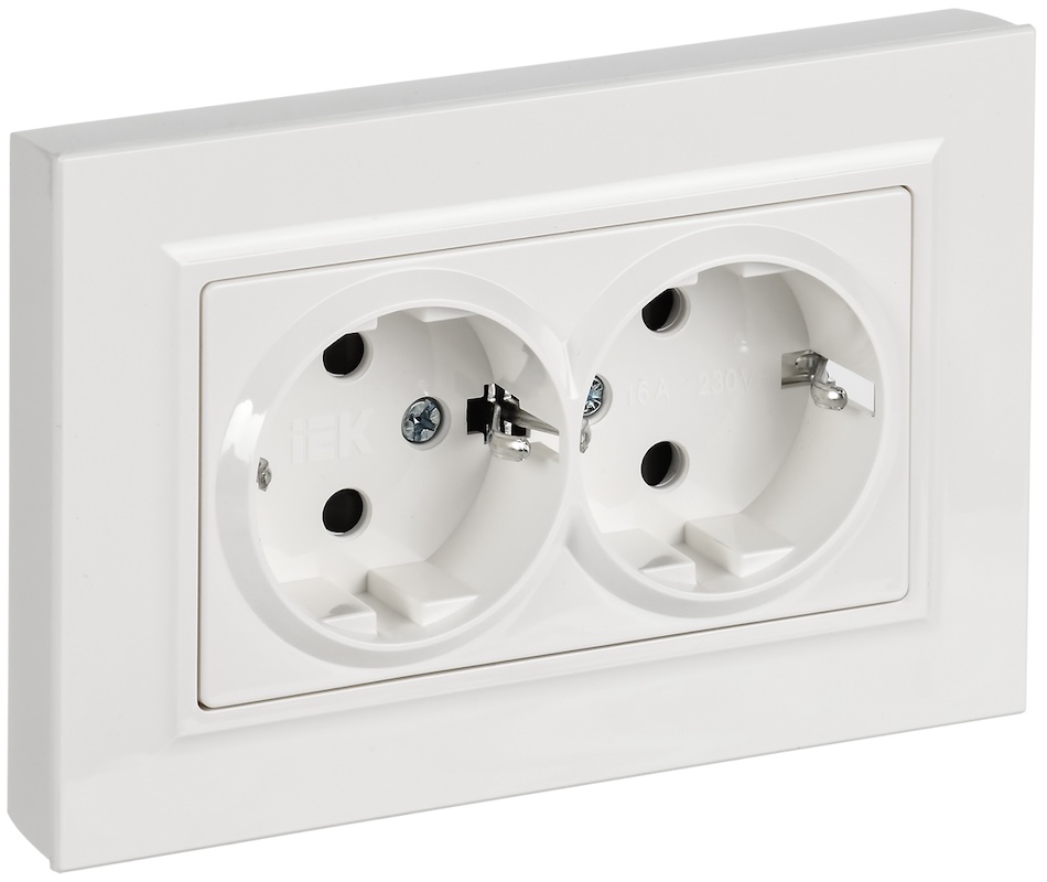 Розетка-моноблок BRITE, со шторками, с заземлением, двойная, винтовые клеммы, цвет - белый