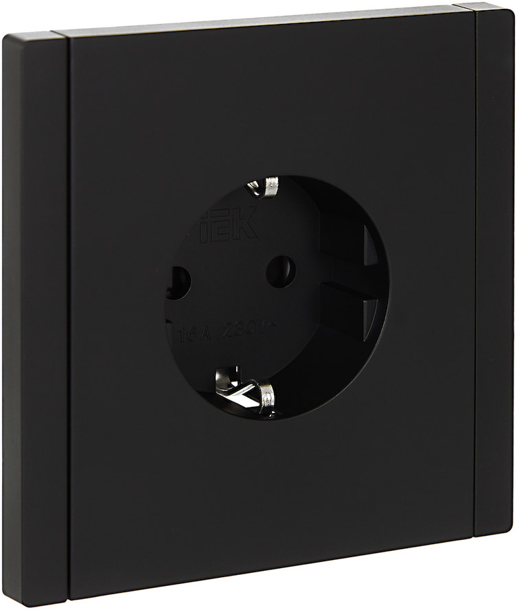 Розетка FORTEPIANO, со шторками, с заземлением, одинарная, безвинтовые клеммы, цвет - черный