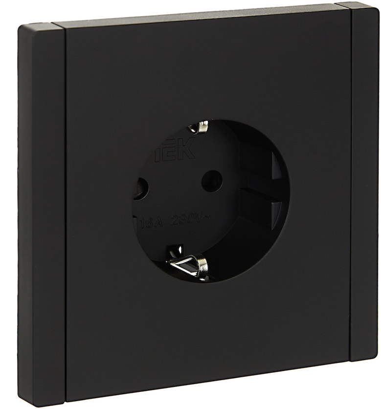 Розетка FORTEPIANO, со шторками, с заземлением, одинарная, винтовые клеммы, цвет - черный
