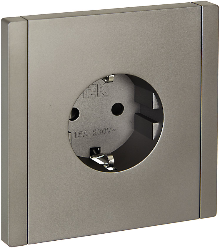 Розетка FORTEPIANO, со шторками, с заземлением, одинарная, винтовые клеммы, цвет - сталь