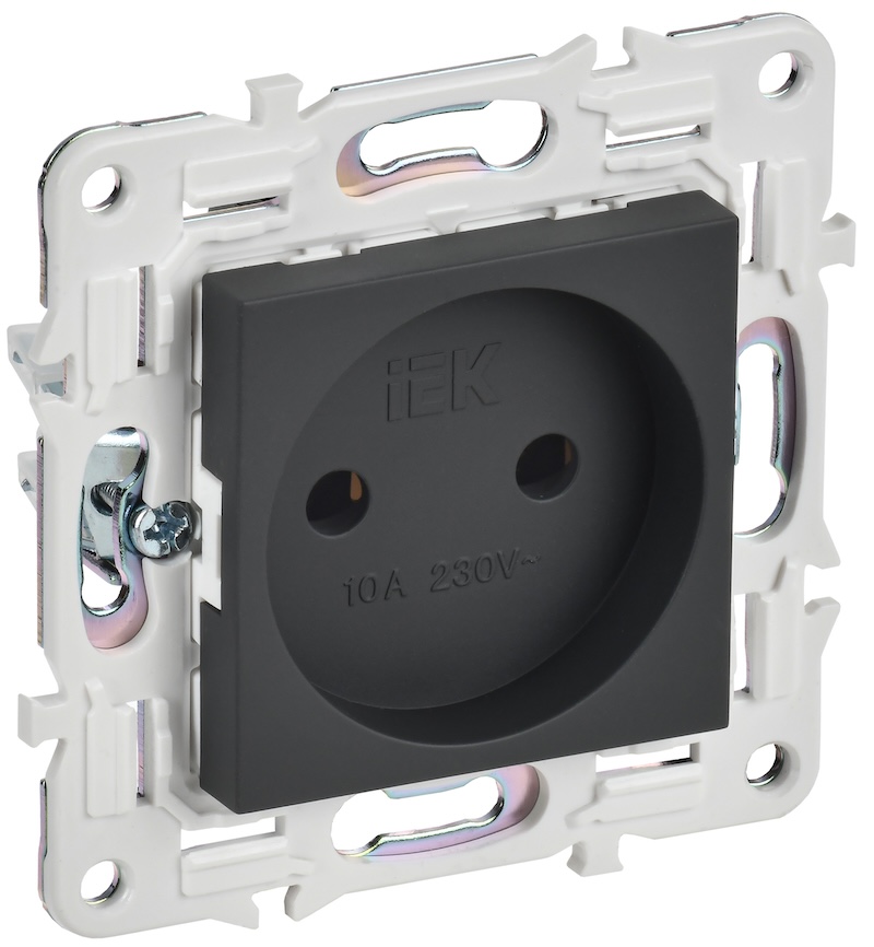 Розетка Skandy, без шторок, без заземления, одинарная, винтовые клеммы, цвет - графит