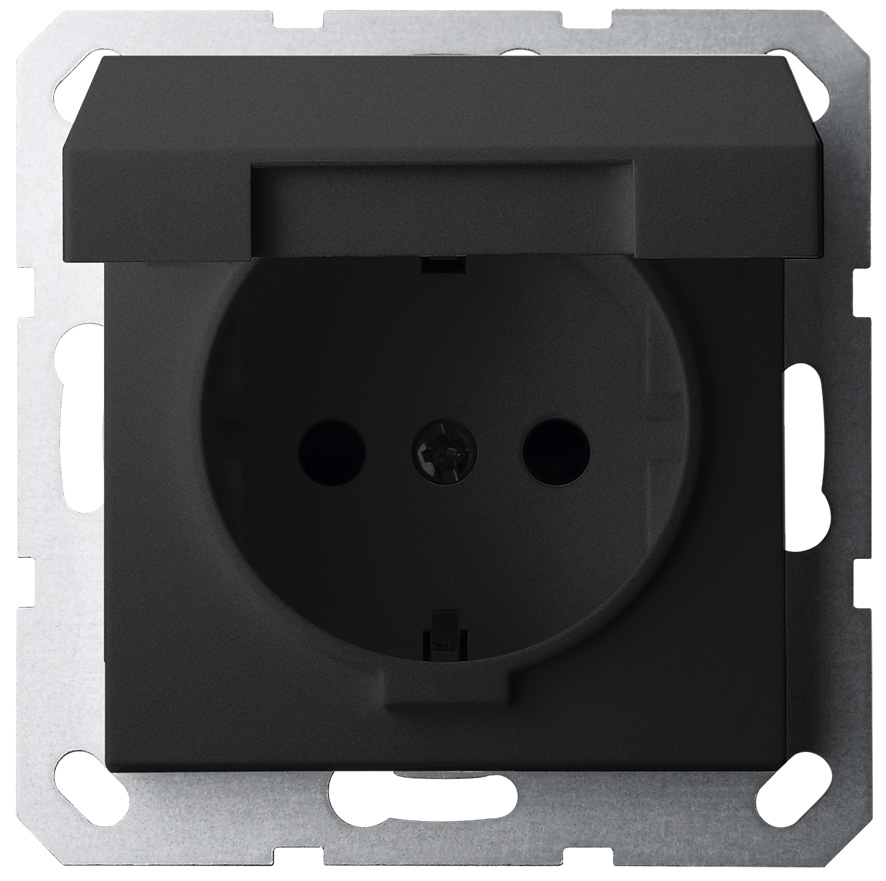 Розетка G series, со шторками, с крышкой, с заземлением, одинарная, цвет - черный матовый