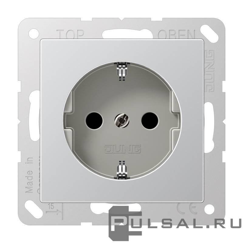 Розетка A VIVA, A creation, A 550, A flow, без шторок, с заземлением, одинарная, безвинтовые клеммы, цвет - алюминий