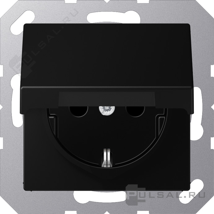 Розетка A VIVA, A creation, A 550, A flow, со шторками, с крышкой, с заземлением, одинарная, безвинтовые клеммы, цвет - черный матовый