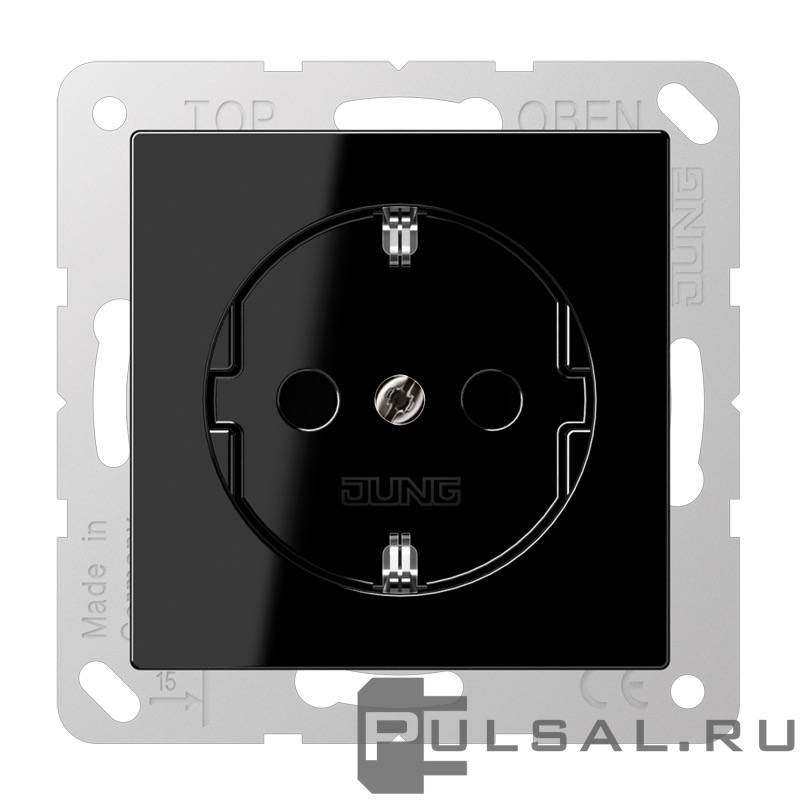 Розетка A VIVA, A creation, A 550, A flow, со шторками, с заземлением, одинарная, безвинтовые клеммы, цвет - черный