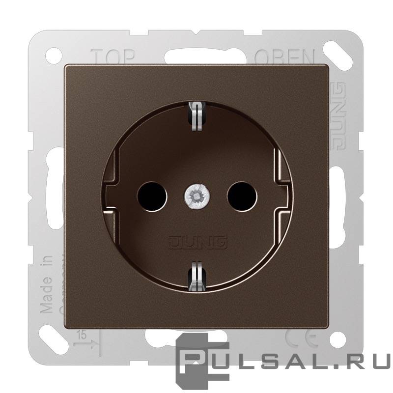 Розетка A VIVA, A creation, A 550, A flow, без шторок, с заземлением, одинарная, безвинтовые клеммы, цвет - мокко