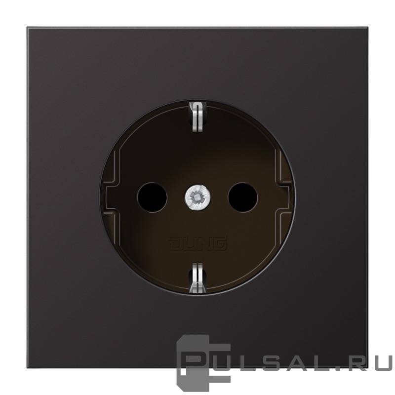Розетка LS 990, LS 1912, LS ZERO, LS-design, FD-design, без шторок, с заземлением, одинарная, безвинтовые клеммы, цвет - алюминий темный