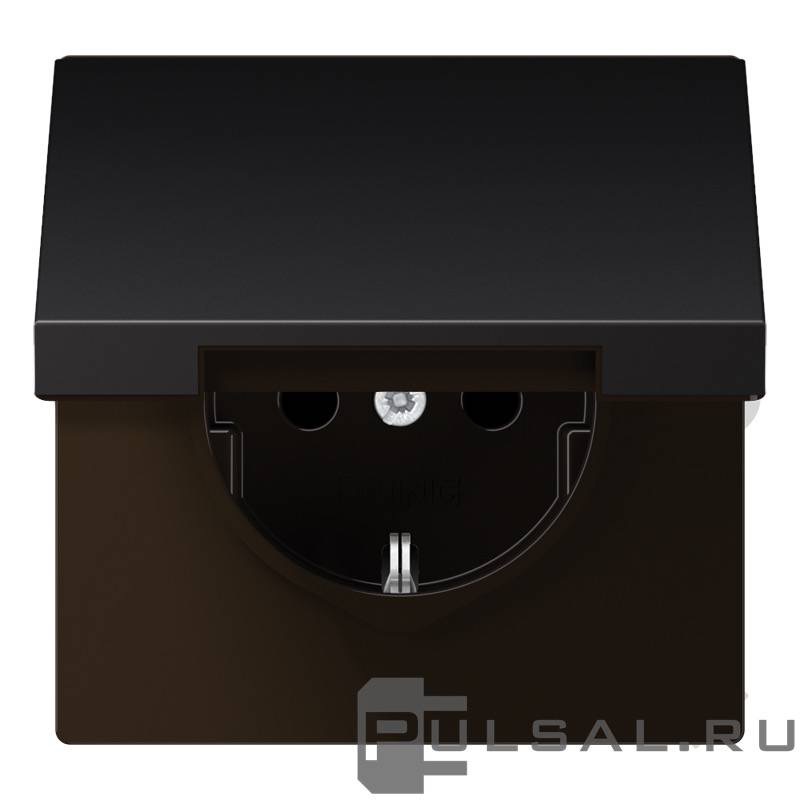 Розетка LS 990, LS 1912, LS ZERO, LS-design, FD-design, без шторок, с крышкой, с заземлением, одинарная, безвинтовые клеммы, цвет - алюминий темный