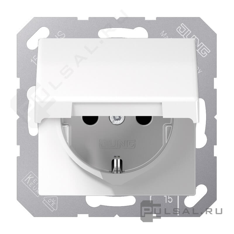 Розетка AS 500, без шторок, с крышкой, с заземлением, одинарная, безвинтовые клеммы, цвет - белый
