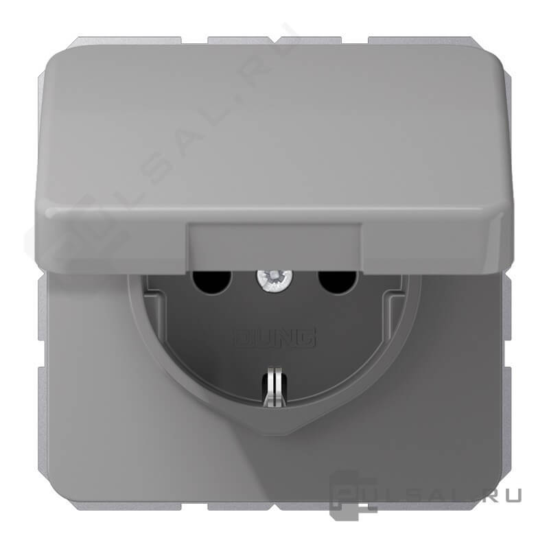 Розетка CD 500, CD ударопрочная, без шторок, с крышкой, с заземлением, одинарная, безвинтовые клеммы, цвет - серый