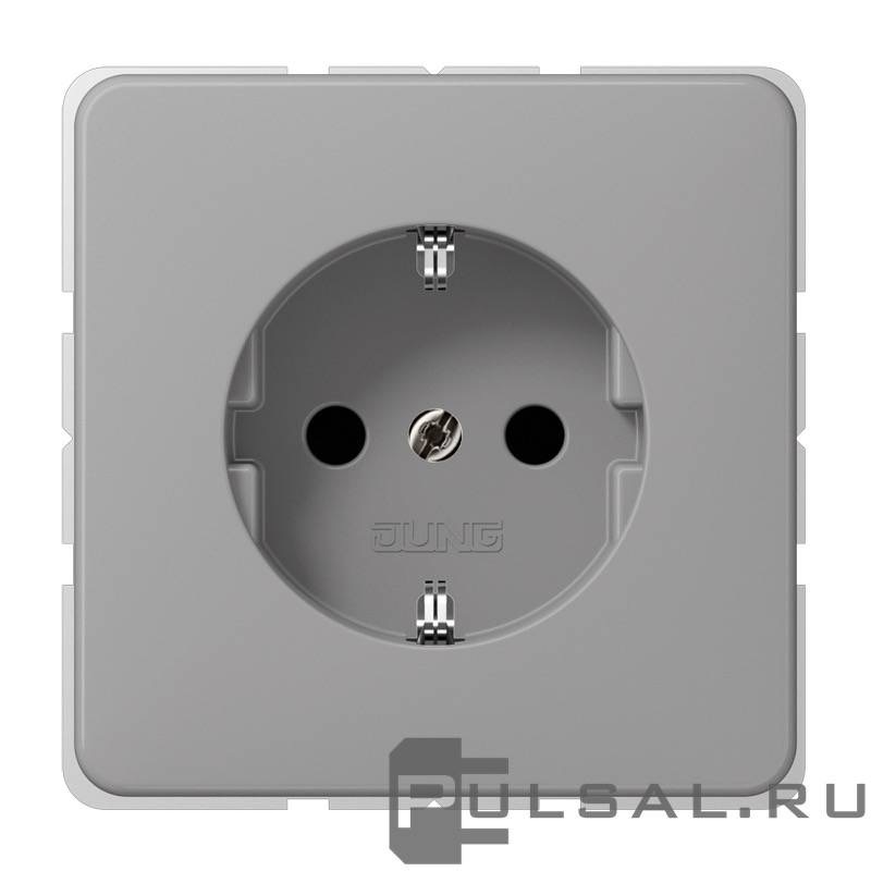 Розетка CD 500, без шторок, с заземлением, одинарная, безвинтовые клеммы, цвет - серый