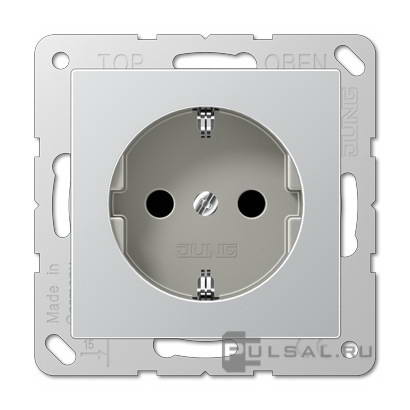 Розетка ECO profi и ECO profi Standart, ECO profi design (ECO Profi Deco), без шторок, с заземлением, одинарная, безвинтовые клеммы, цвет - алюминий