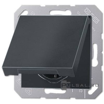 Розетка ECO profi и ECO profi Standart, ECO profi design (ECO Profi Deco), без шторок, с крышкой, с заземлением, одинарная, безвинтовые клеммы, цвет - антрацит матовый