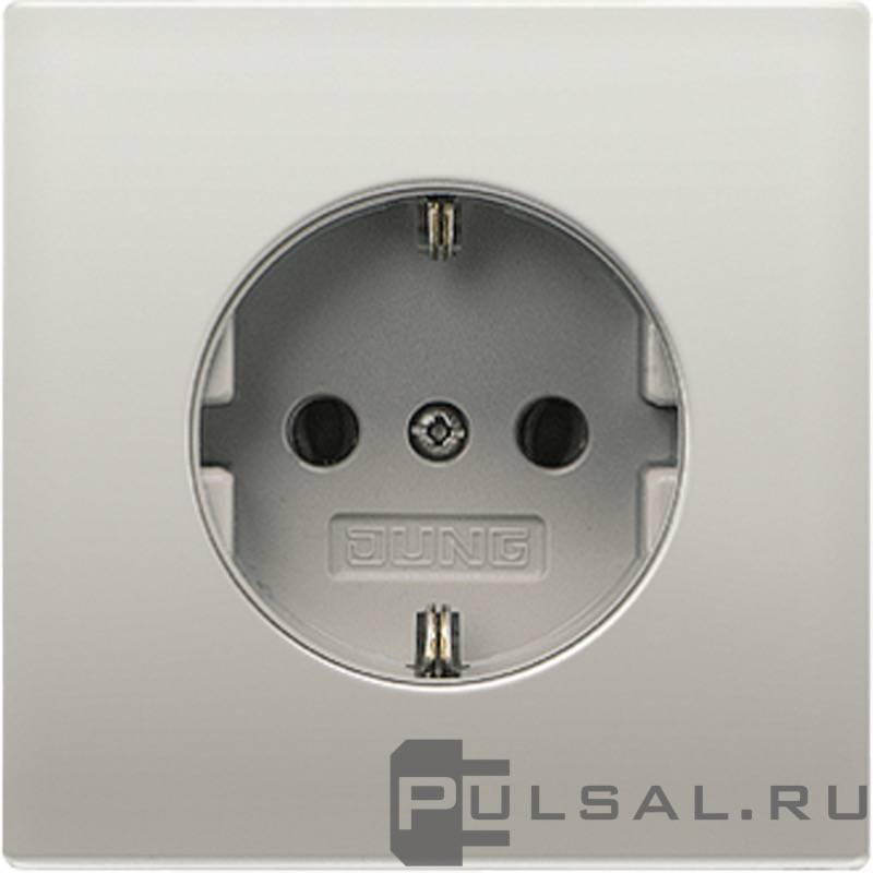 Розетка LS 990, LS 1912, LS plus, LS ZERO, LS-design, FD-design, без шторок, с заземлением, одинарная, безвинтовые клеммы, цвет - нержавеющая сталь