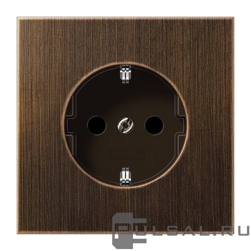 Розетка LS 990, LS ZERO, LS-design, FD-design, со шторками, с заземлением, одинарная, безвинтовые клеммы, цвет - латунь античная