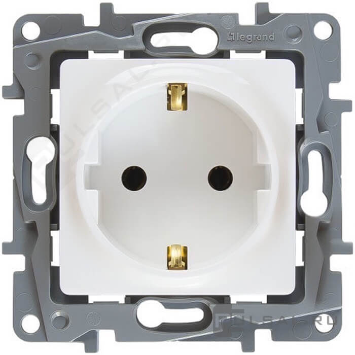 Розетка Etika, без шторок, с заземлением, одинарная, винтовые клеммы, цвет - белый