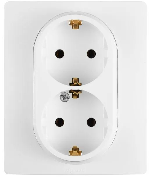 Розетка Etika, без шторок, с заземлением, двойная, винтовые клеммы, цвет - белый