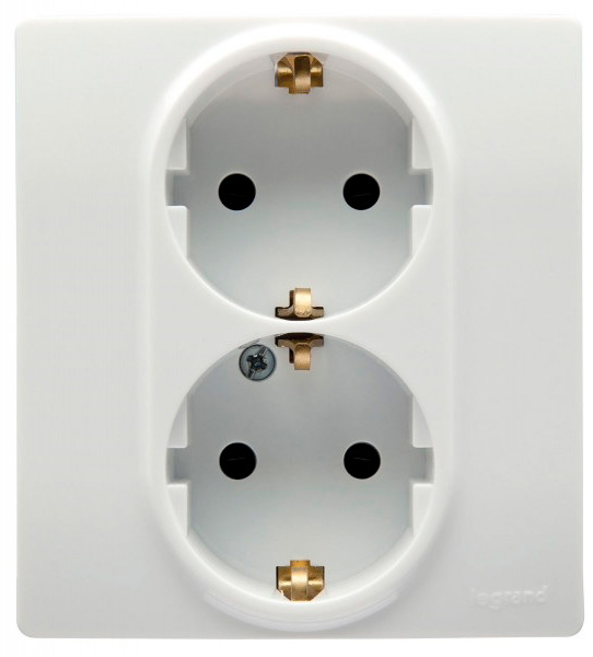 Розетка Etika, со шторками, с заземлением, двойная, винтовые клеммы, цвет - белый