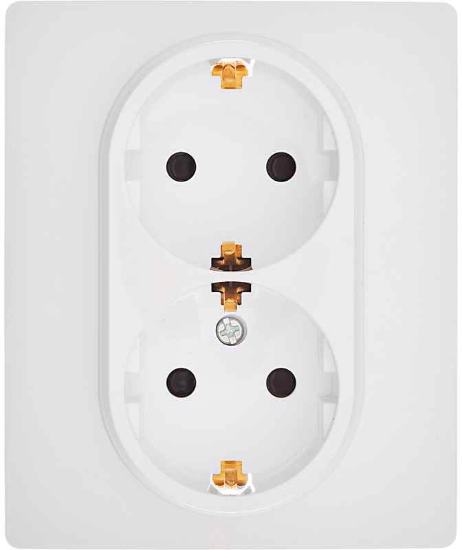Розетка-моноблок Inspiria, со шторками, с заземлением, двойная, винтовые клеммы, цвет - белый