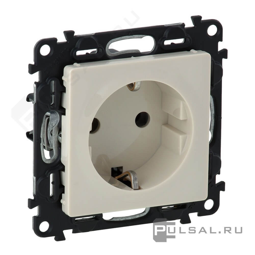 Розетка Valena Life, со шторками, с заземлением, одинарная, винтовые клеммы, цвет - слоновая кость