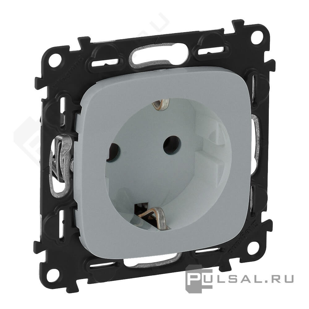 Розетка Valena Allure, со шторками, с заземлением, одинарная, винтовые клеммы, цвет - алюминий